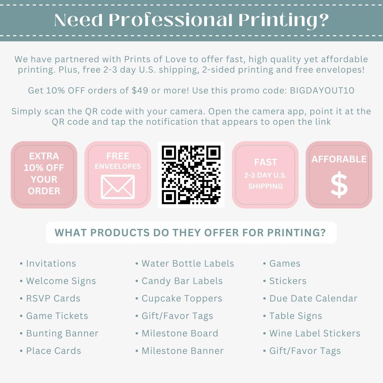 We have partnered with Prints of Love to offer fast, high quality yet affordable printing. Plus free 2-3 day U.S. shipping and free envelopes! Simply click here to select your print options. They will handle the rest!