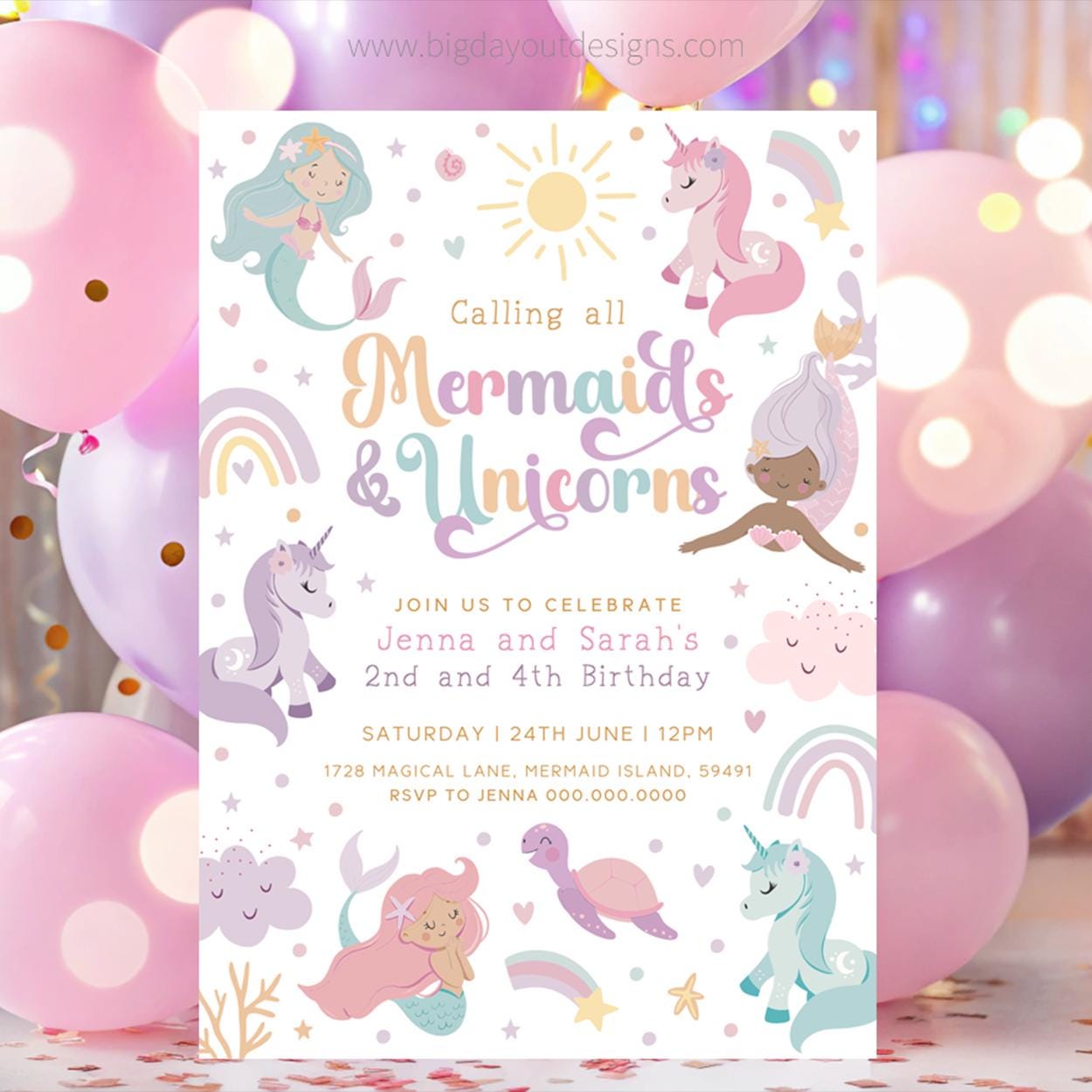 Whether you're hosting a vibrant pool party or a whimsical joint sibling birthday celebration, this editable template allows you to customize every detail effortlessly. With instant download and printable options, planning the perfect mermaid or unicorn pool party has never been easier.